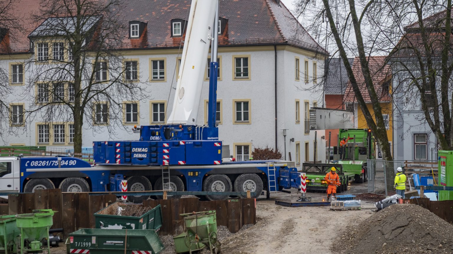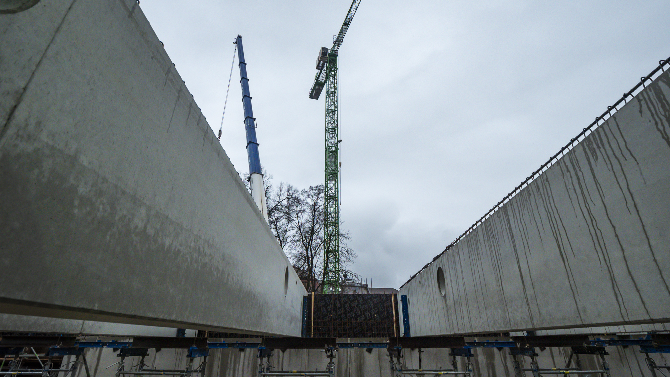 Die Außenwände der neuen Sporthalle der Martinsschule stehen bereits seit ein paar Wochen. Diese Woche wurden die Spannbetonträger der Dachkonstruktion eingebaut. Wieder einmal war aufgrund der beengten Platzverhältnisse Vorort bei der Anlieferung und dem Einbau der knapp 20 Tonnen schweren Betonfertigteile höchste Konzentration gefordert. Am späten Nachmittag war es geschafft und der der letzte der 8 Spannbetonträger an seinem Platz verankert. Wenn das Wetter mitspielt wird noch vor Weihnachten die Decke der Sporthalle betoniert.